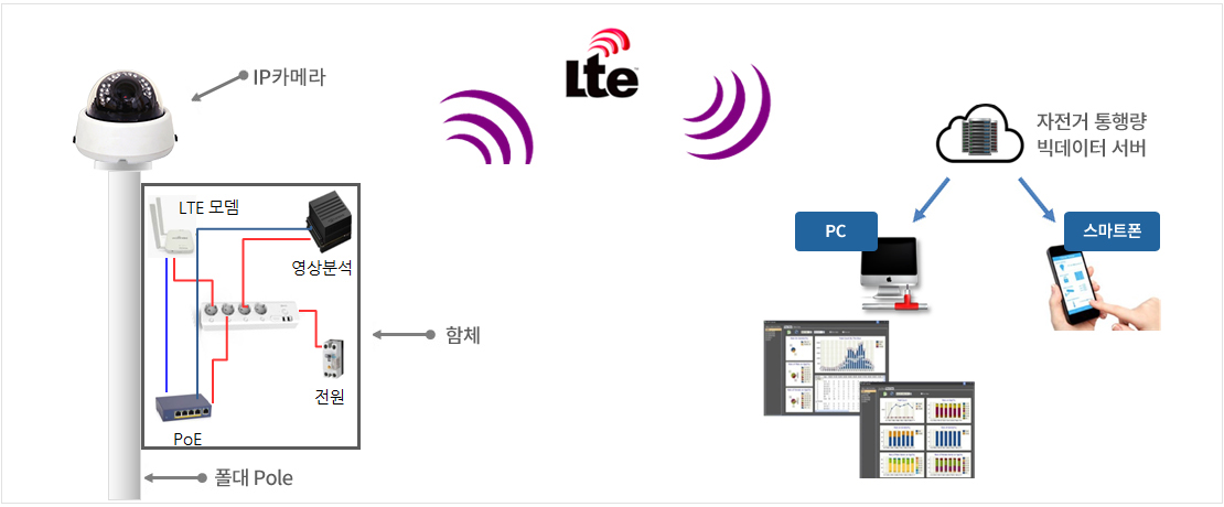 ㆍ CCTV 등 영상감시장치의 영상을 분석하여 차량, 보행자, 자전거, 오토바이 등의 통행량 측정